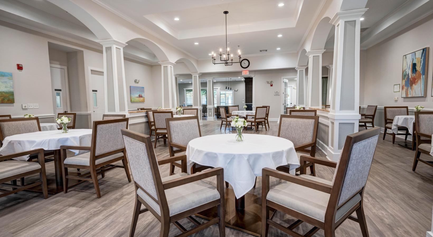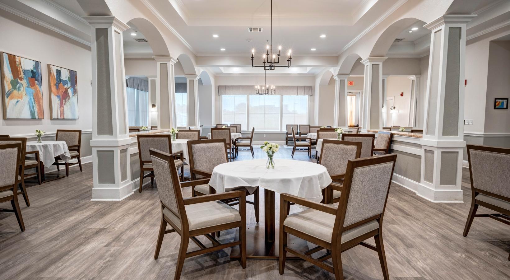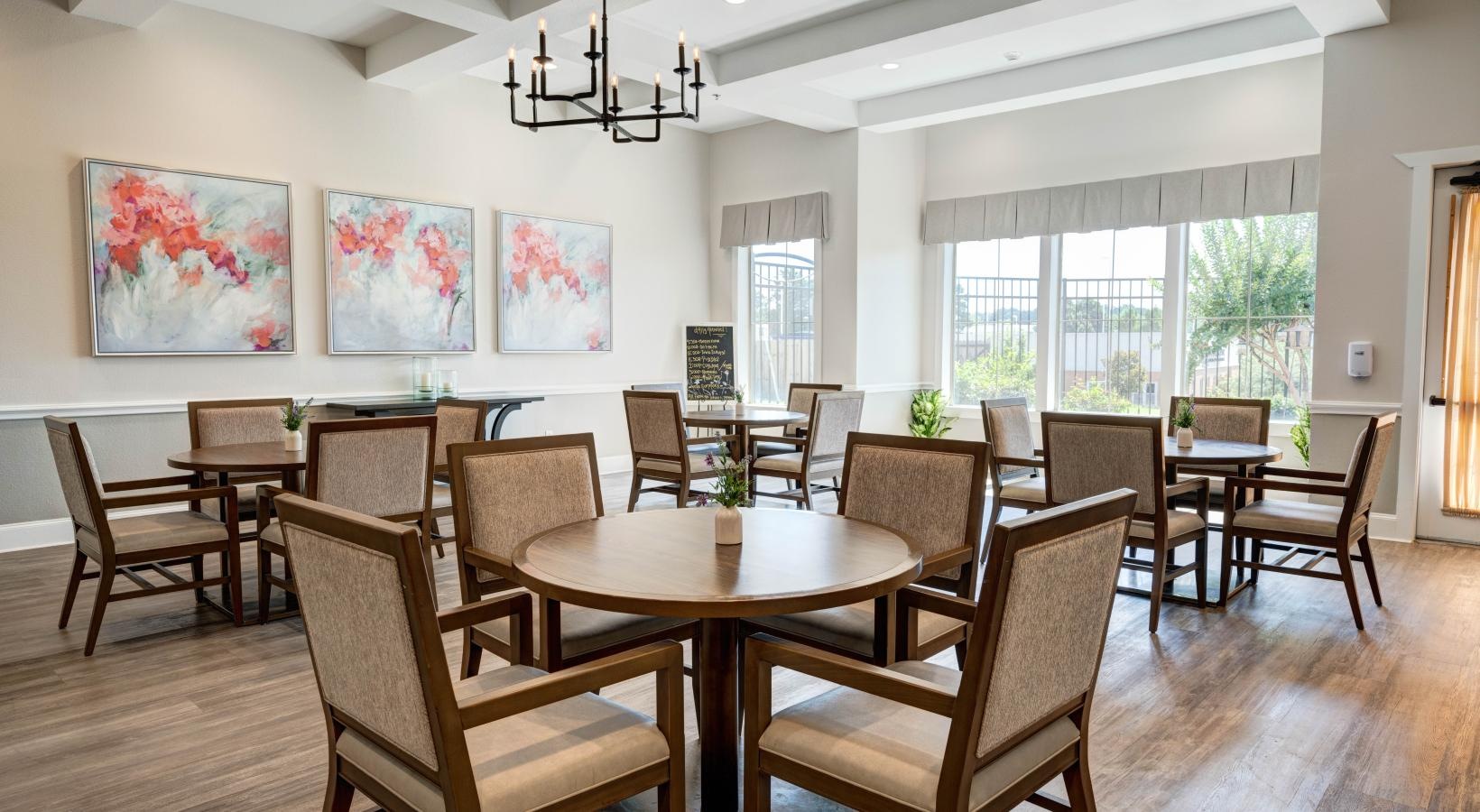 • dining room with round tables and chairs