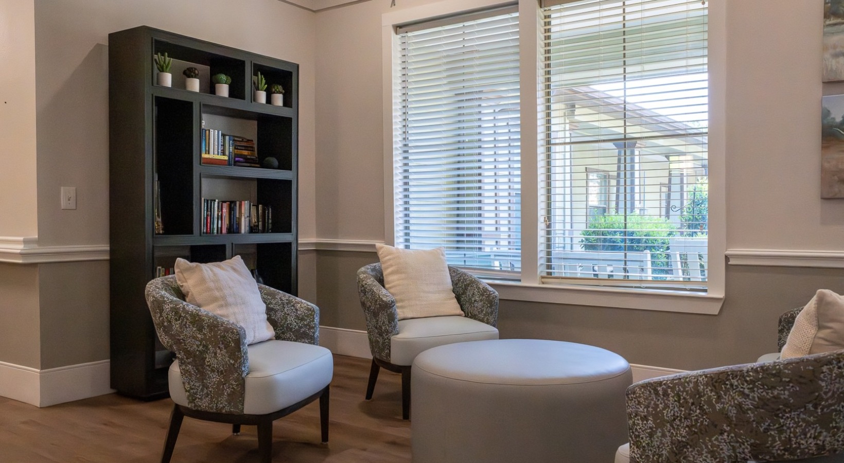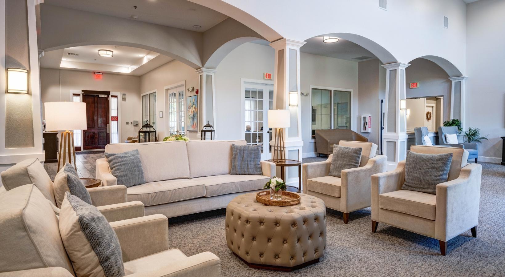 • lobby seating area next to a large window